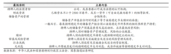 图表3: 香港《稳定币条例》对申请批给牌照的最低准则规定