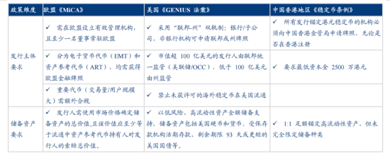 图表1: 欧盟、美国、中国香港地区关于稳定币相关监管的对比